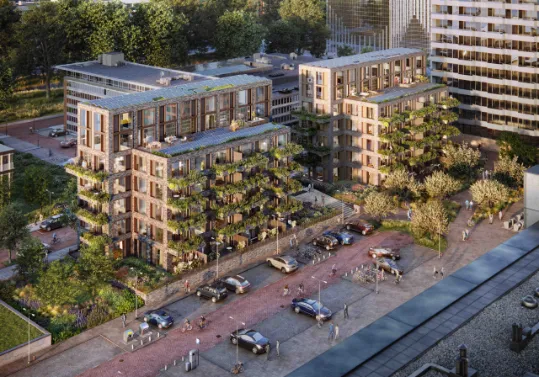 Mannoury is a unique 64 apartment building in Amsterdam that contributes to biodiversity, quality of life and energy transition by combining a blue-green roof, gray water treatment and efficient solar panels.